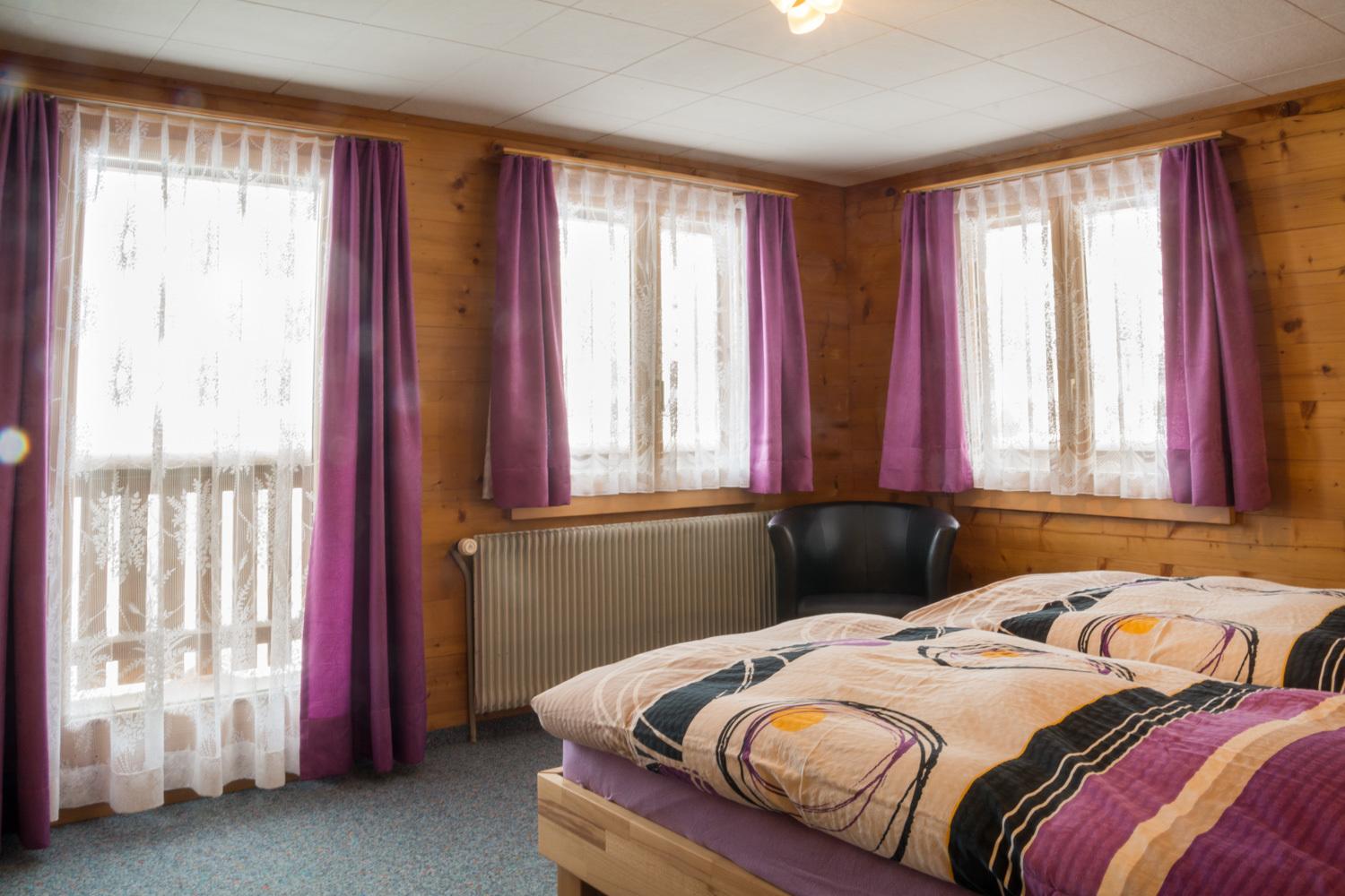 Einen grossen Balkon mit Stühlen und einem Tisch steht zur Wohnung dazu, um die Aussicht auf die Walliser Berge zu geniessen.