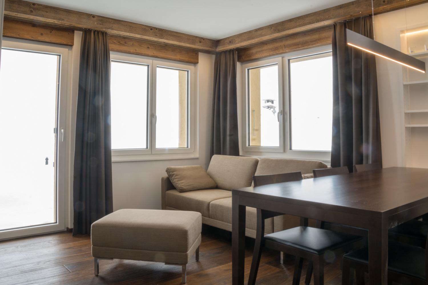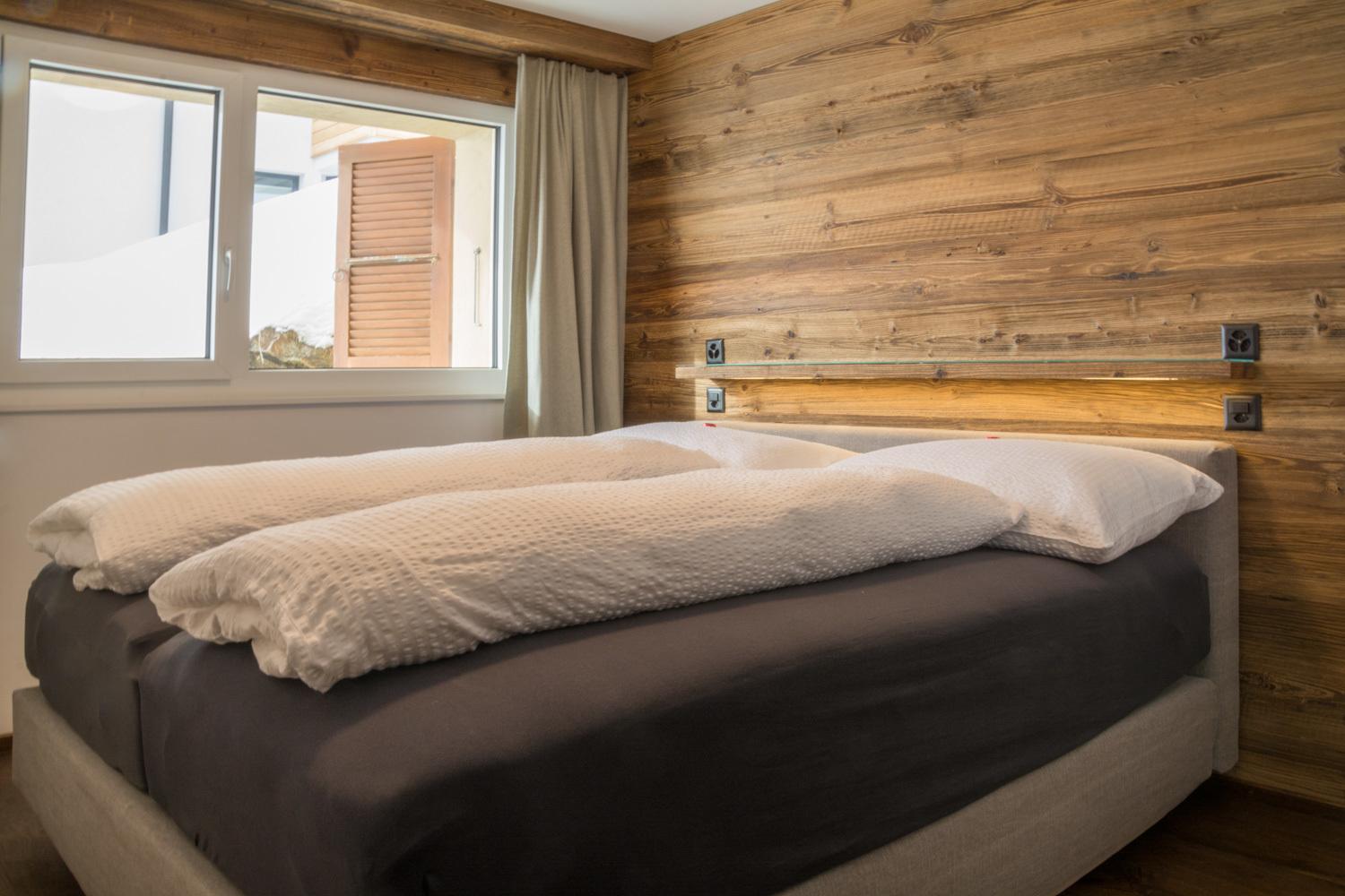 Die geräumige Wohnung, bestehend aus 3 Schlafzimmern, 2 Badezimmern (WC/Dusche) und der Küche mit Wohnraum, bietet Ihnen grosszügig Platz für 6 Personen.