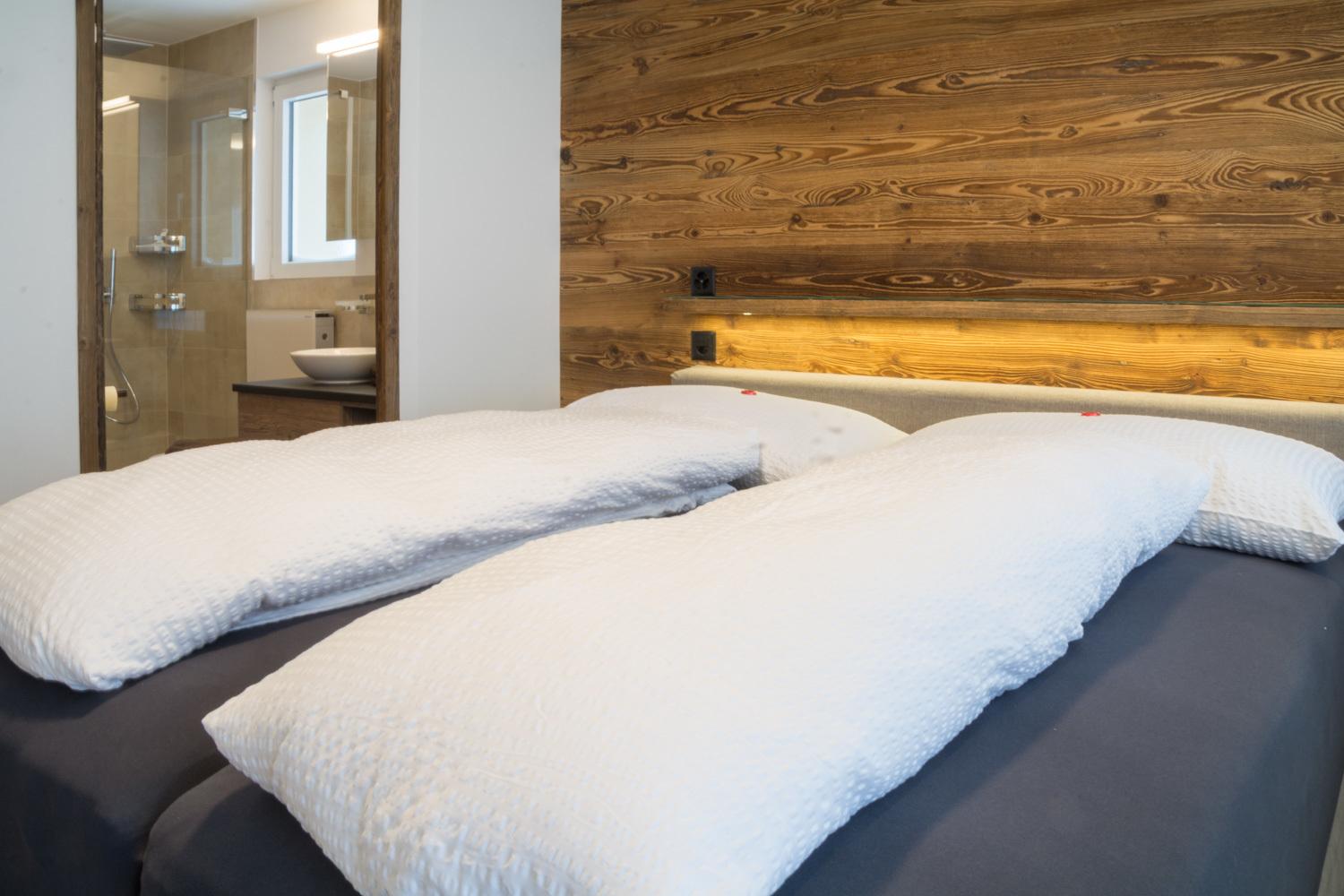 Die geräumige Wohnung, bestehend aus 3 Schlafzimmern, 2 Badezimmern (WC/Dusche) und der Küche mit Wohnraum, bietet Ihnen grosszügig Platz für 6 Personen.